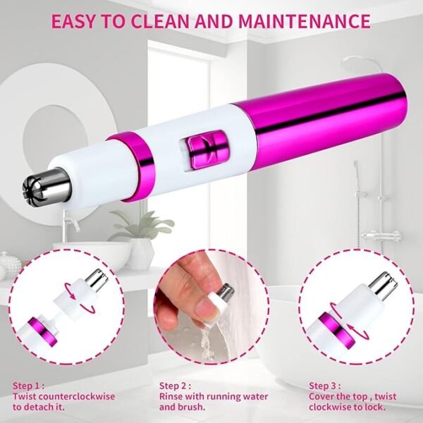 • 【WATERPROOF & EASY CLEANING】: This cordless ladies nose hair trimmers, with washable and removable trimmer head is convenient for cleaning and maintenance.