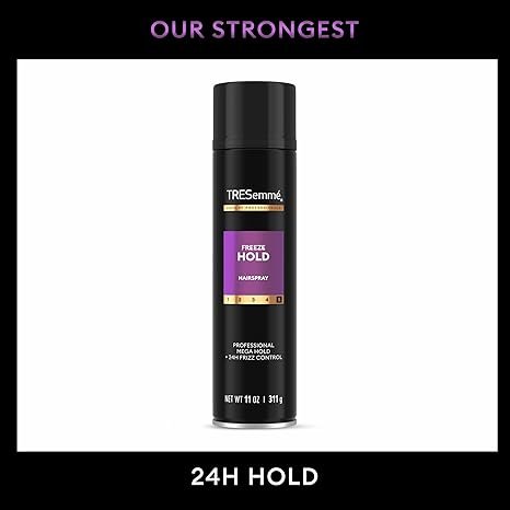 Need an anti-frizz hairspray with a hold that really lasts? TRESemmé Freeze Hold is designed with our strongest 24 hour hold and frizz control. Our professional-quality formula is designed to lock in moisture & lock out frizz. From the #1 Hairspray brand, every ingredient is carefully selected to ensure your hair receives the best possible care. Our hair care products are Certified Cruelty-Free by PETA. To achieve the best results, apply TRESemmé Protecting Heat Styling Spray to damp hair for breakage and heat protection up to 450 degrees so you can heat style with confidence. Lock in your style and moisture with our Freeze Hairspray, providing your strongest hold and frizz control. For over 70 years, TRESemmé has been committed to democratizing salon trends, making salon-quality products accessible to everyone, every day making it America’s #1 Hairspray brand. You can count on TRESemmé for trend-inspired, professional-grade products designed to maximize ooh la la in the everyday. So as you navigate your styling journey, we’ll be here to help you style your hair (and life) your way.